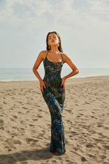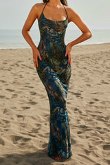 Our sheer mesh maxi dress is all about enhancing your figure for that sexy shape. Styled in sheer printed mesh fabric, our long beach dress features a scoop cross back. Perfect for Dinner by the beach.
