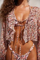 Our Nelly Ruffle Shirt is your new best friend for the summer. With its tie up details and floaty sleeves this shirt will be a staple on your vacation. Pair with our Nelly bikini for the ultimate floral vibe.